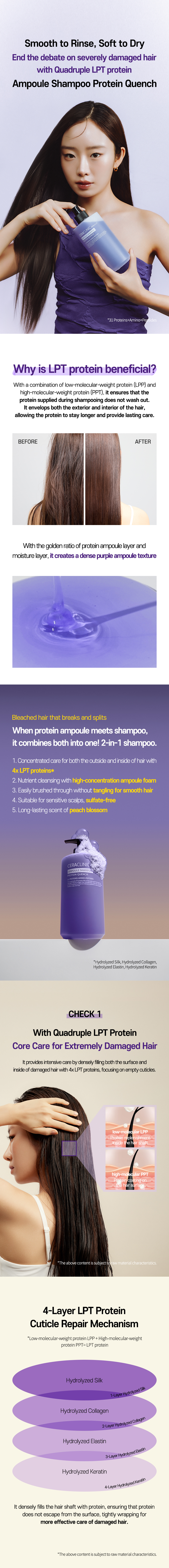 - It provides intensive care by densely filling both the surface and inside of damaged hair with 4x LPT proteins, focusing on empty cuticles.