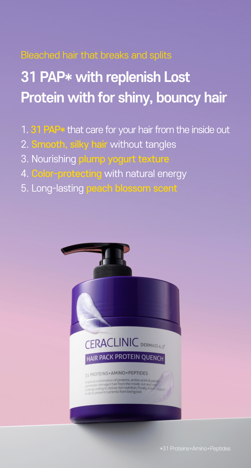 Achieve revitalized hair from the roots with 31 PAP, boasting a bouncy yogurt texture