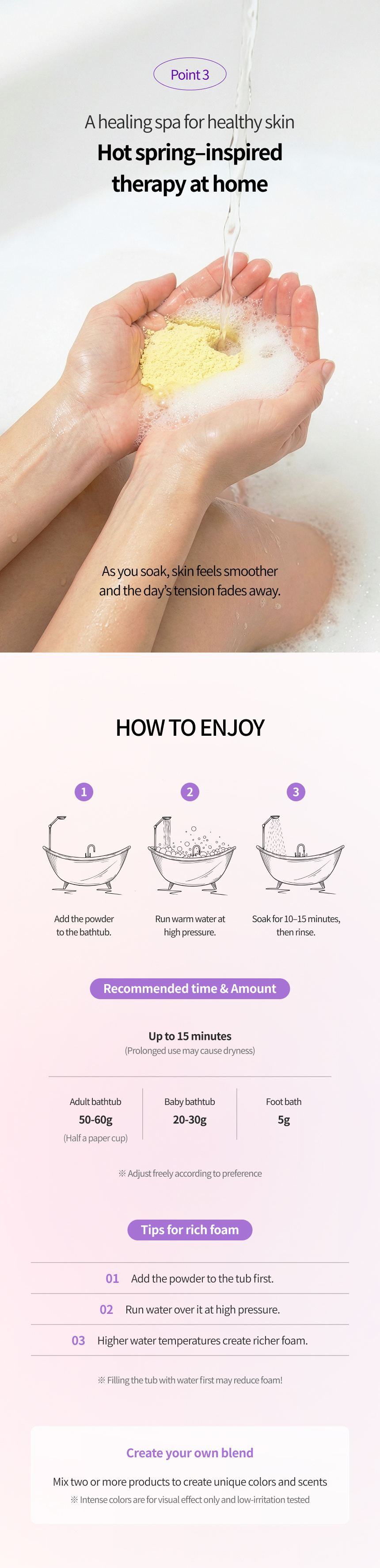 - Rich bubbles : Coconut-derived mild surfactant