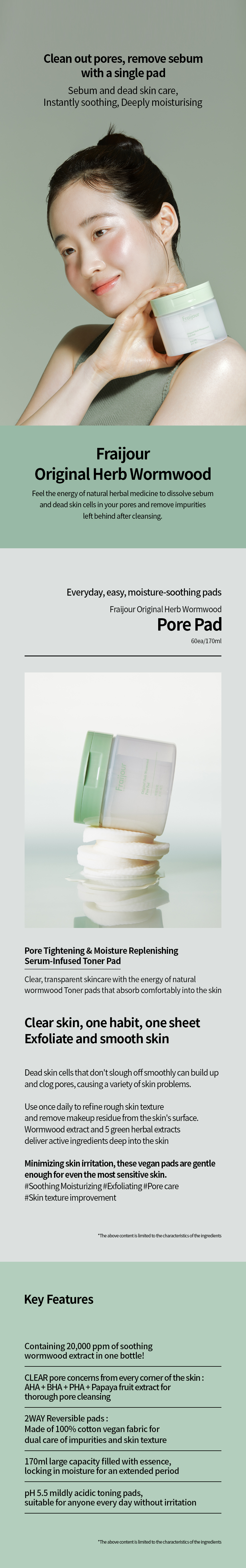 [FRAIJOUR] Original Herb Wormwood Pore Pad 60ea/170ml
