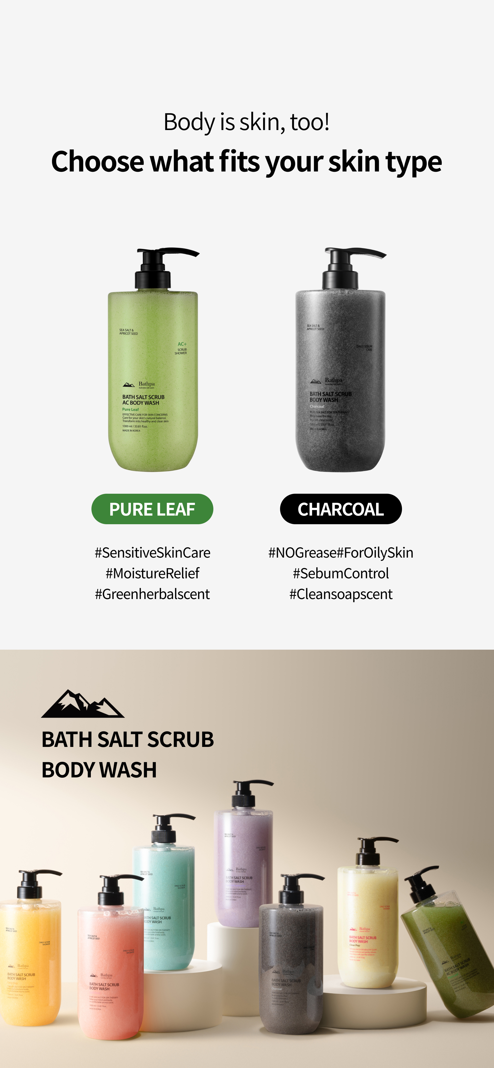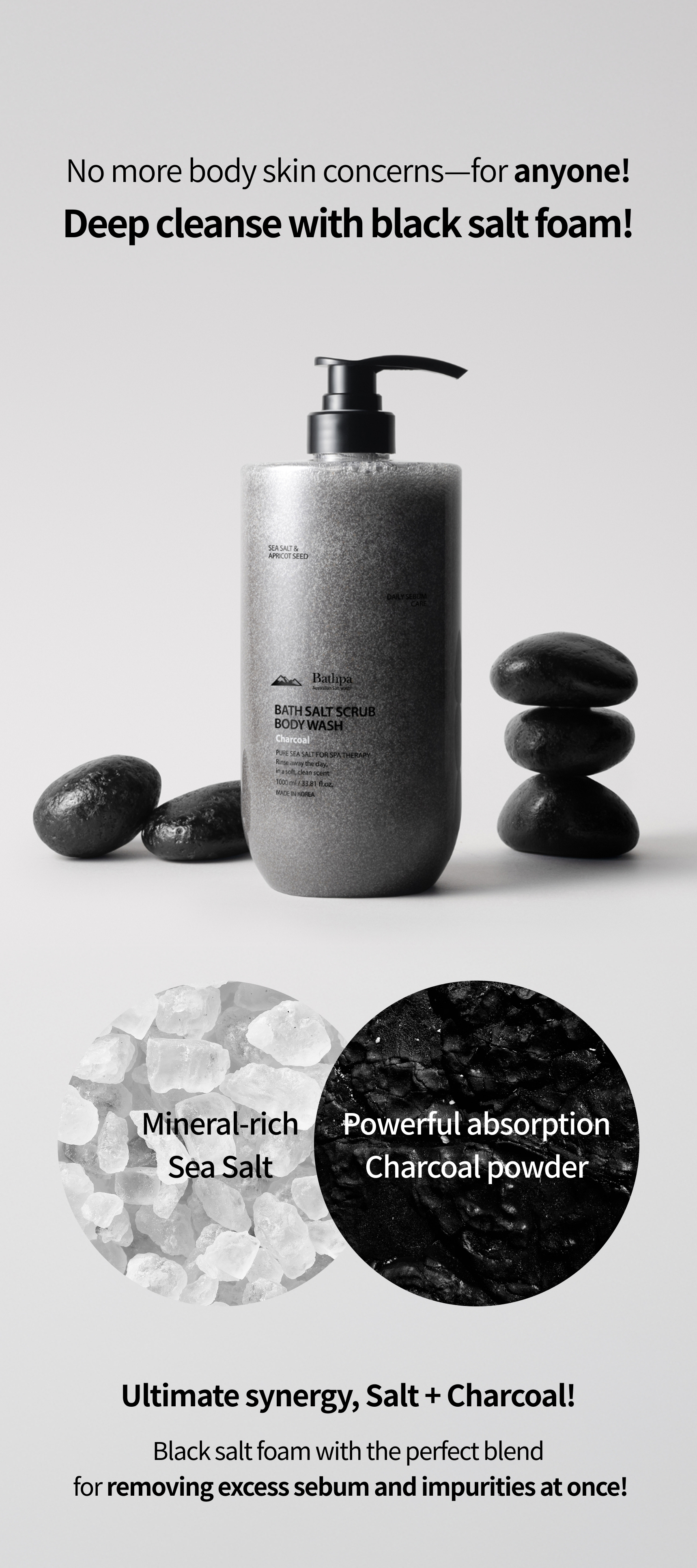 [BATHPA] Bath Salt Scrub Body Wash 1,000ml : Charcoal