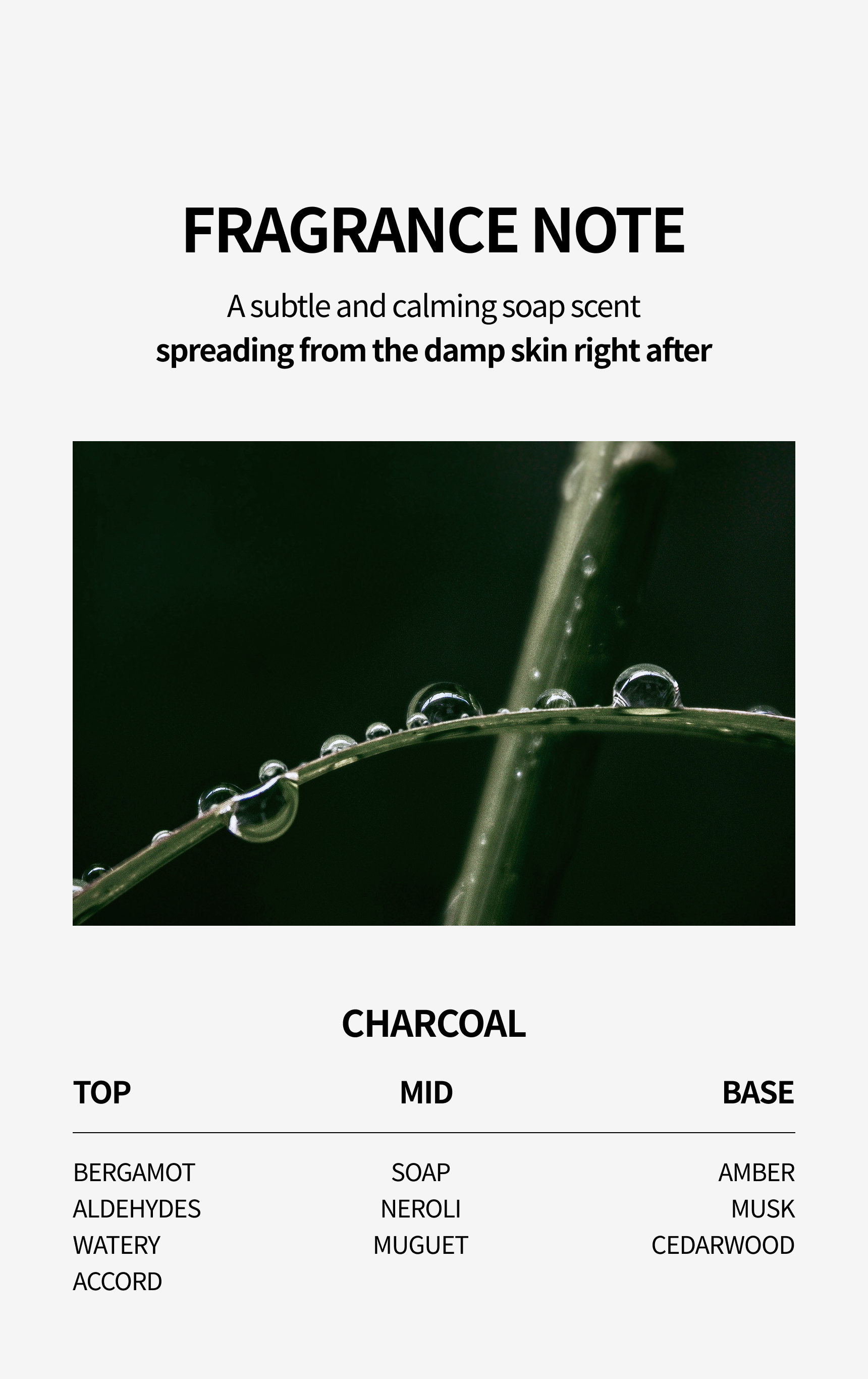 - FRAGRANCE : A subtle and calming soap scent that everyone can enjoy