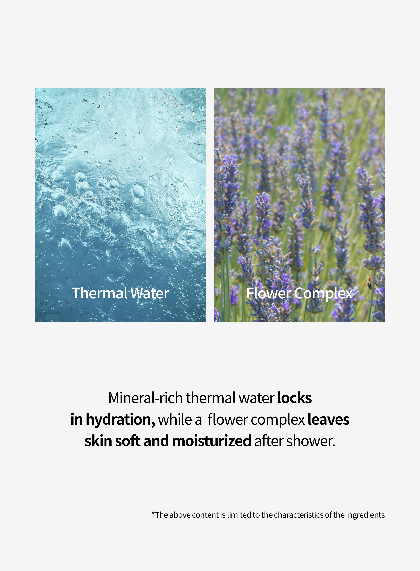 - Leaves skin soft and refreshing finish : Thermal water + Flower Complex