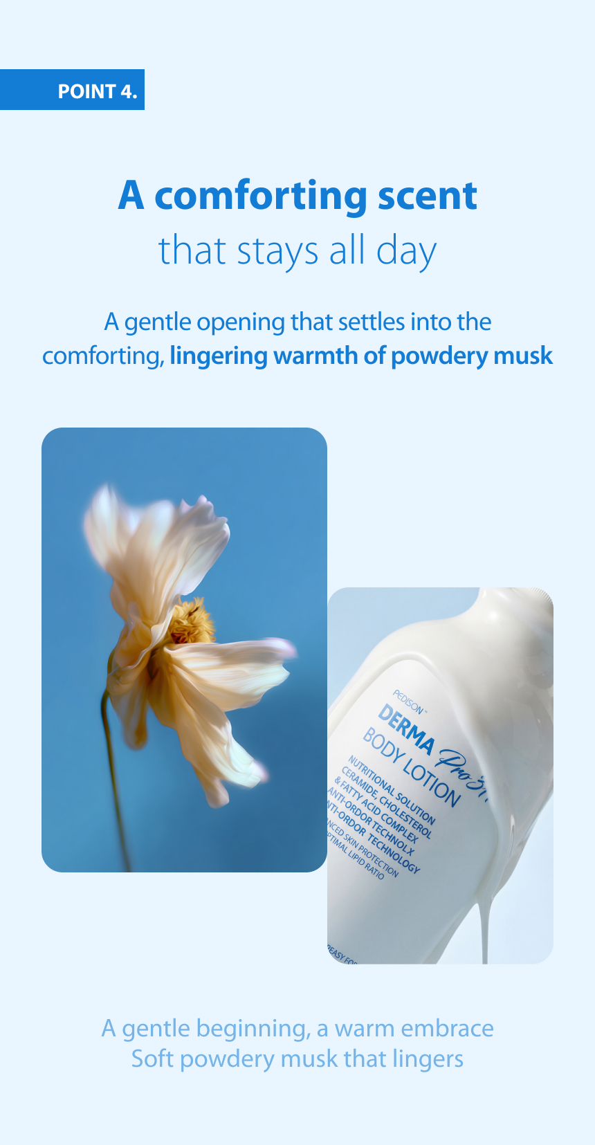 A subtly lingering powdery musk scent